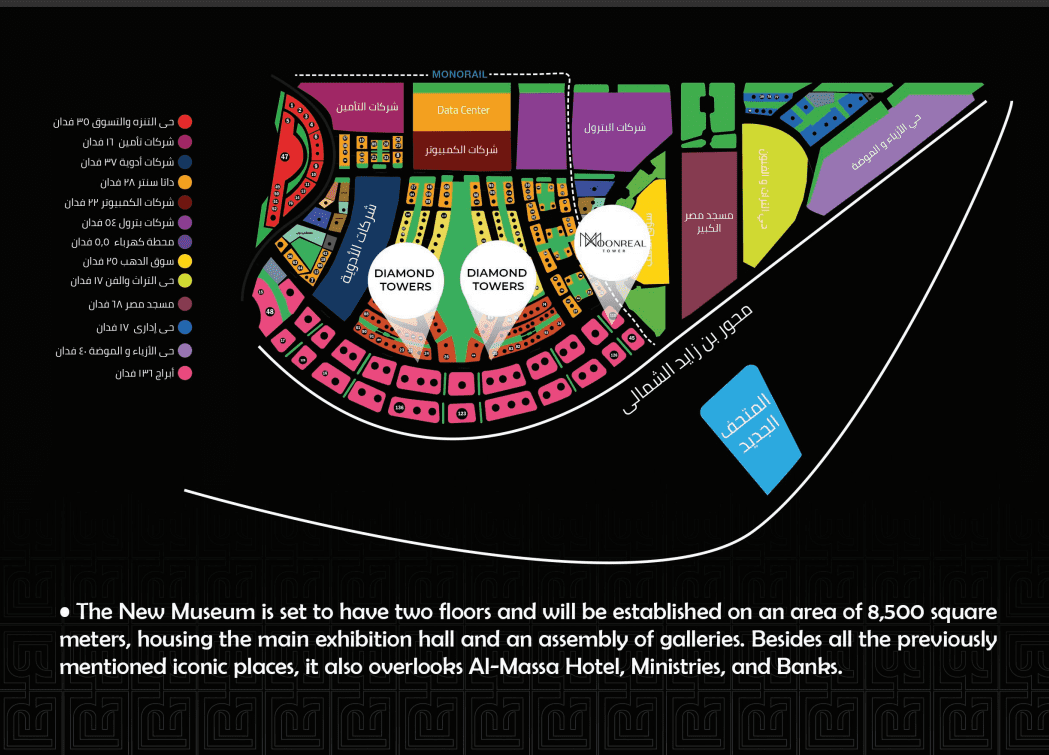 الاسعار بـ moonreal tower ☑️ انظمة سداد : تصل الي 10 سنوات ☑️ مقاول عام : محرم باخوم ☑️ استشاري هندسي : بريم ستديو ☑️ شركة ادارة : كاد ☑️ الموقف الانشائي : تم الانتهاء من مرحلة الحفر بالكامل قطعة رقم " 1 " الابراج السياحية الموقع الاميز بالداون تاون ▪️ مباشرة علي محطة منوريل الداون تاون ▪️ مباشرة امام النهر الاخضر ▪️ مباشرة امام مسجد مصر و سوق الذهب و ساحة الشعب ▪️ مباشرة علي المحور المركزي للداون تاون " خط سير المنوريل " ▪️ 2 دقيقة من مطار . 2 دقيقة من الحي الحكومي . 2 دقيقة من الحي الدبلوماسي